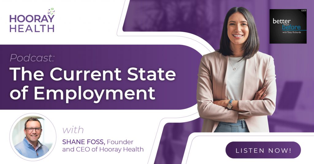 Better Than Before with Tony Richards, a Business Leaders Podcast, recently interviewed Hooray Health’s Founder and CEO, Shane Foss. In this podcast, Tony and Shane talk about the current state of employment as it relates to the healthcare industry as a whole and Hooray Health.